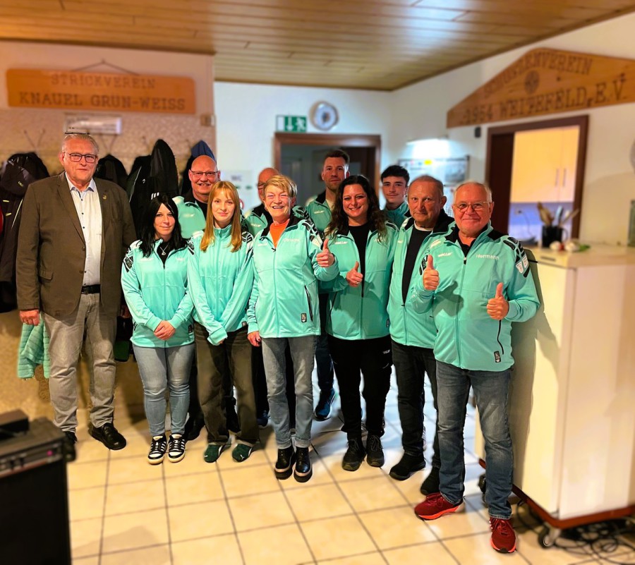 Unsere Aktiven tragen nun personalisierte Jacken in einem frischen, hellen Türkis mit Vereinsstick auf der Rückseite.