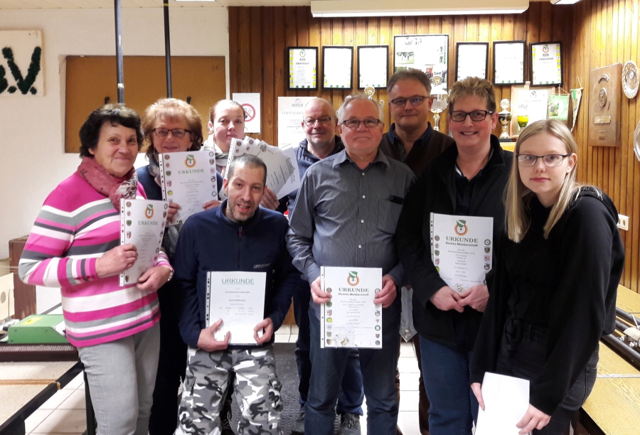 Im Laufe des Jahres waren unsere Sportschützen auch wieder sehr aktiv und haben sowohl Einzeln als auch in der Mannschaft sehr gute Ergebnisse erzielt. Unser Schießsportleiter Werner Schlötter hatte viel zu tun als er die diversen Urkunden an unsere Schützen ausgeben durfte.